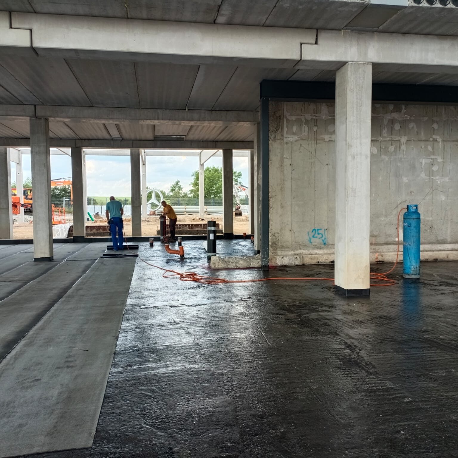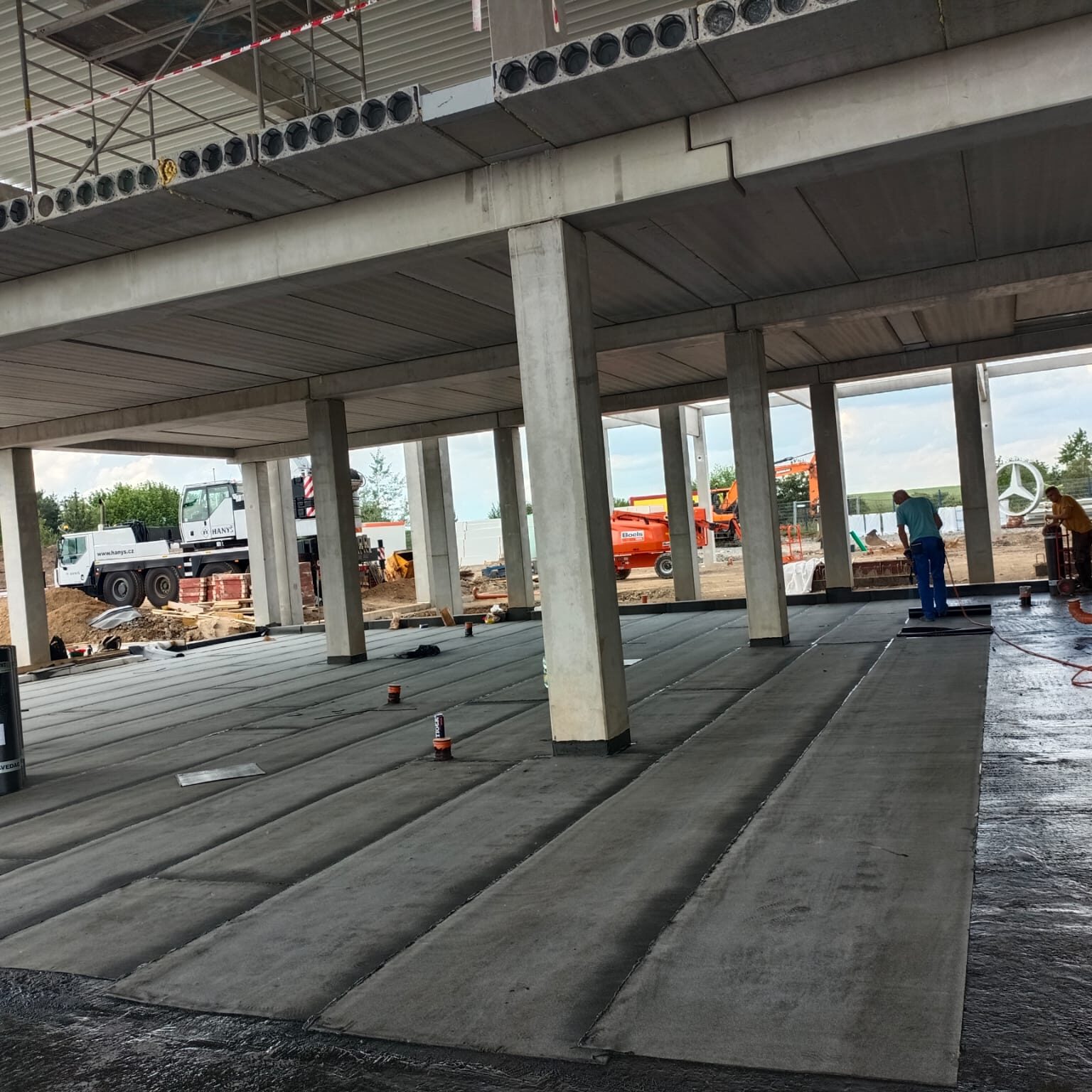 Základová deska o rozměru 350m realizována pro firmu Syner v Zápech.