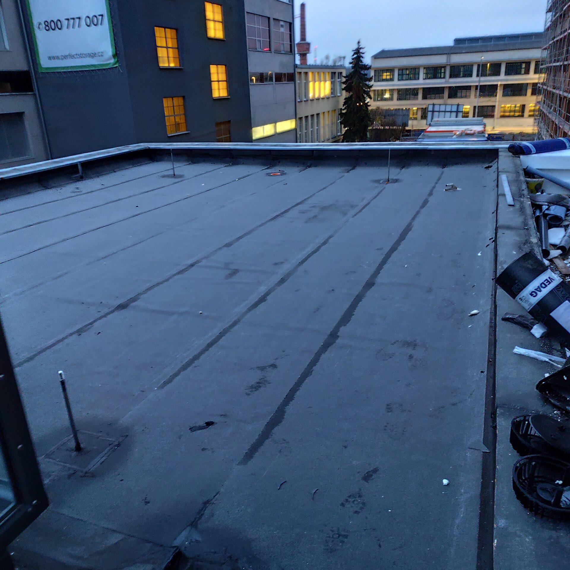 Aplikace dvou vrstev asfaltového pásu pro firmu Střechy Slavonia